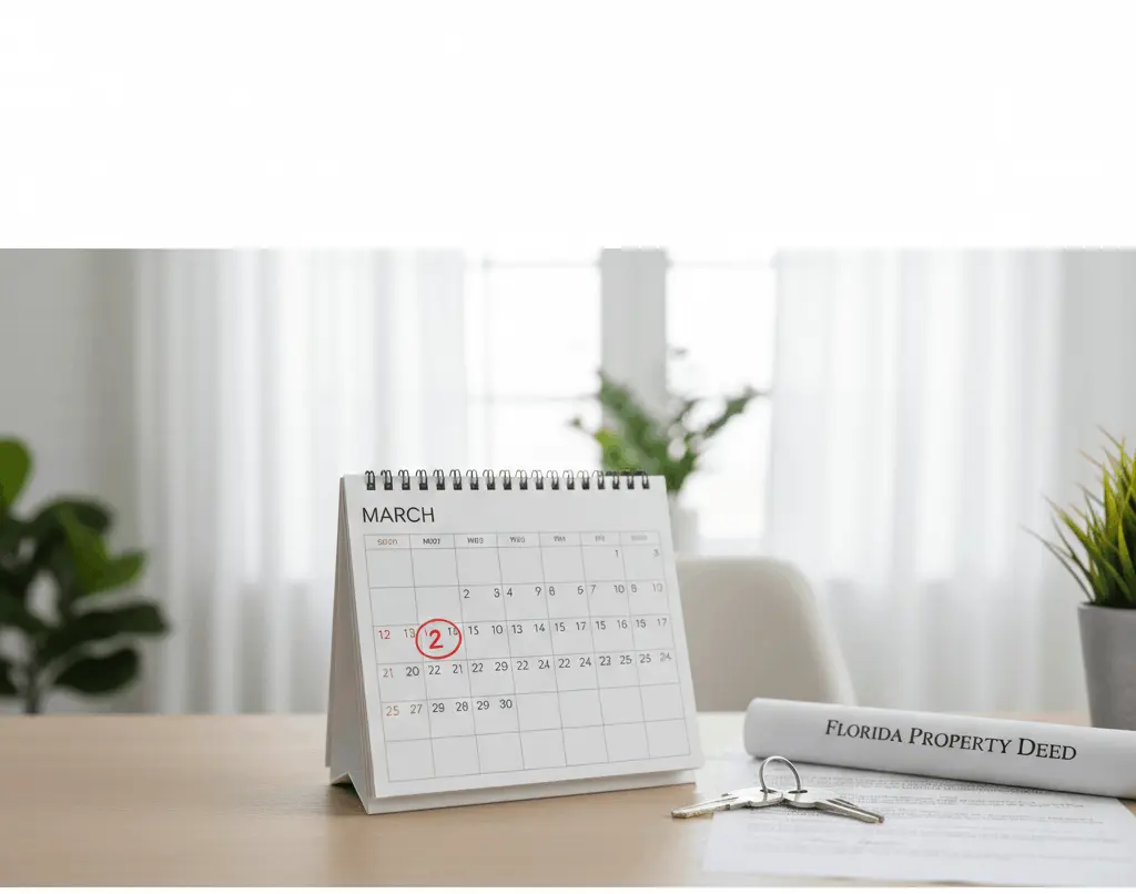 Monday, March 2, 2026 is the deadline to file for your Florida Homestead Exemption. (Note: The deadline is typically March 1st, but since that falls on a Sunday this year, you have until Monday).